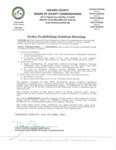 *Holmes County Burn Ban in Effect 04.09.2026 @ 11:15AM*